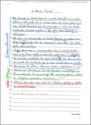 O texto foi também objecto de correcção (hetero-correcção), com vista ao seu aperfeiçoamento, utilizando para este efeito um código previamente elaborado pelos alunos. Seguiu-se a reescrita colectiva fazendo-se as respectivas correcções.